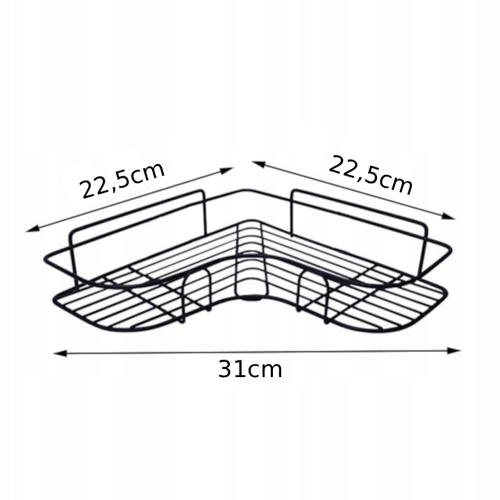 Nowoczesna półka narożna pod prysznic to idealne rozwiązanie do każdej łazienki! Wykonana z trwałego metalu, malowana proszkowo na elegancki, matowy czarny kolor, świetnie wpisuje się w styl loft, industrialny oraz nowoczesny. Dzięki wymiarom 31 cm szerokości oraz ramionom o długości 22,5 cm idealnie dopasowuje się do narożników ścian, oszczędzając miejsce i zapewniając wygodne przechowywanie kosmetyków i akcesoriów łazienkowych.