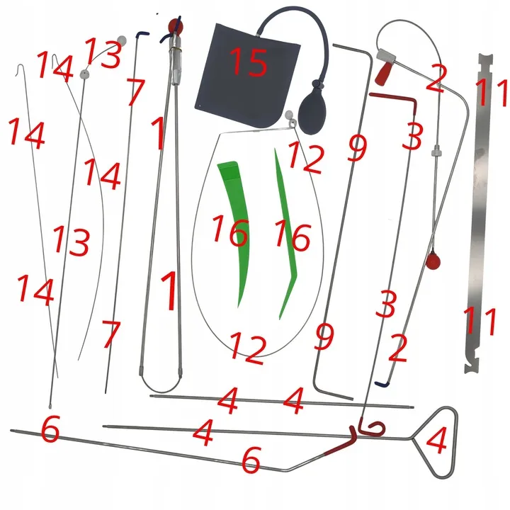 Zestaw do awaryjnego otwierania drzwi eliminuje konieczność posiadania kluczy do otwarcia zamka, co jest szczególnie przydatne w przypadku, gdy klucze zostaną zgubione lub pozostaną wewnątrz pojazdu.
