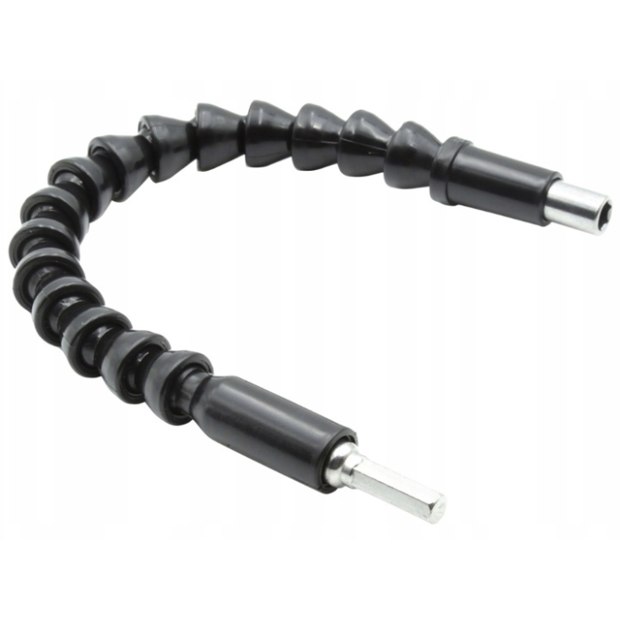 Elastyczna przedłużka na wkrętarkę pozwalająca dostać się nam w trudno dostępne miejsca . Odpuść sobie gimnastykę i rozciąganie przed montażem szafy , dzięki tej przedłużce dokręcanie śrub pod zlewem czy w innych trudno dostępnych miejscach stanie się dziecinnie łatwe .