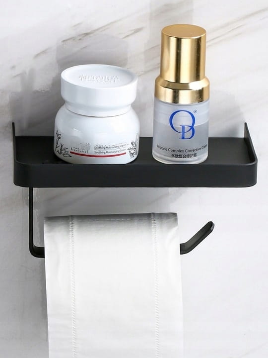 Funkcjonalny Wieszak Czarny Uchwyt Na Papier Toaletowy Z Półeczką - Loft