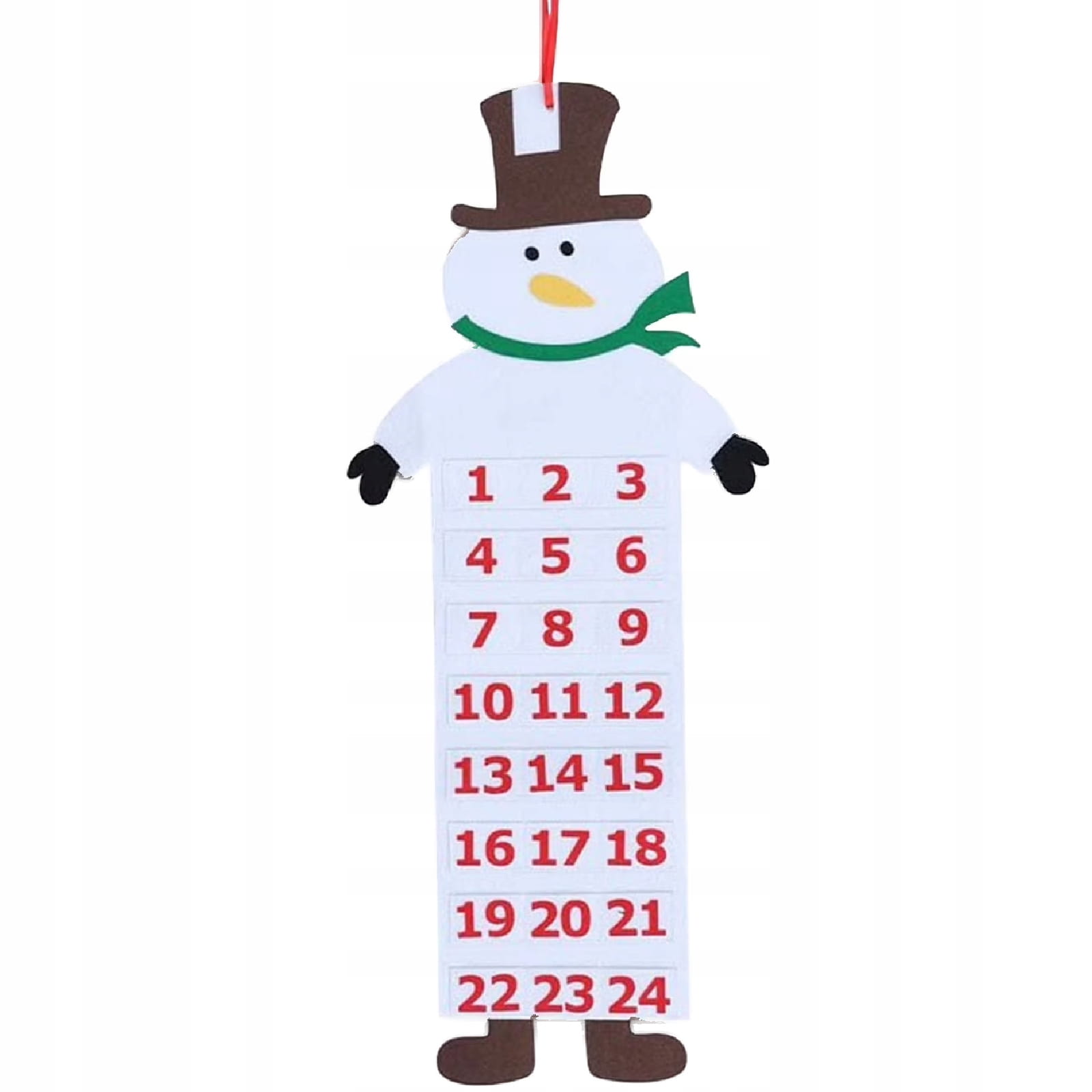 Kalendarz Adwentowy Filcowy Kalendarz Z 24 Kieszonkami - Biały Bałwanek