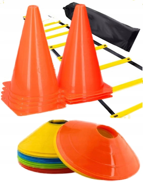 Zestaw treningowy z drabinką koordynacyjną, pachołkami i grzybkami to popularne narzędzie do poprawy szybkości, zwinności, koordynacji i kondycji fizycznej. Tego typu zestawy są często wykorzystywane przez sportowców różnych dyscyplin, takich jak piłka nożna, koszykówka, siatkówka czy lekkoatletyka, ale także przez trenerów personalnych i osoby trenujące rekreacyjnie.