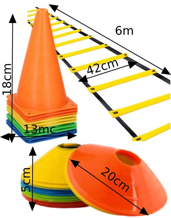 ✅ Drabinka koordynacyjna: Umożliwia pracę nad poprawą zwinności i szybkości nóg. Ćwiczenia na drabince pomagają w rozwijaniu precyzji i koordynacji ruchów.