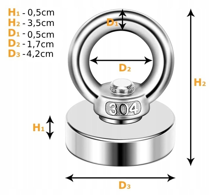 ✅ Średnica magnesu D3: 4,2 cm