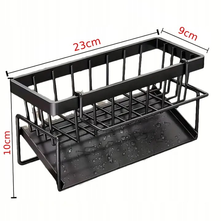 Funkcjonalny organizer na gąbki do mycia naczyń to niezbędny element każdej nowoczesnej kuchni. Wykonany z trwałego metalu pokrytego czarną powłoką, cechuje się wysoką odpornością na wilgoć i korozję. Dzięki praktycznemu kształtowi doskonale sprawdzi się przy zlewie – pomieści gąbki, szczotki, druciaki czy płyn do naczyń, zapewniając porządek i wygodny dostęp do akcesoriów. Ażurowa konstrukcja umożliwia swobodny odpływ wody, co zapobiega powstawaniu pleśni i nieprzyjemnych zapachów. Stabilna konstrukcja pozwala postawić organizer bezpośrednio na blacie lub zamontować go wewnątrz szafki. Idealny wybór do nowoczesnych i klasycznych kuchni.