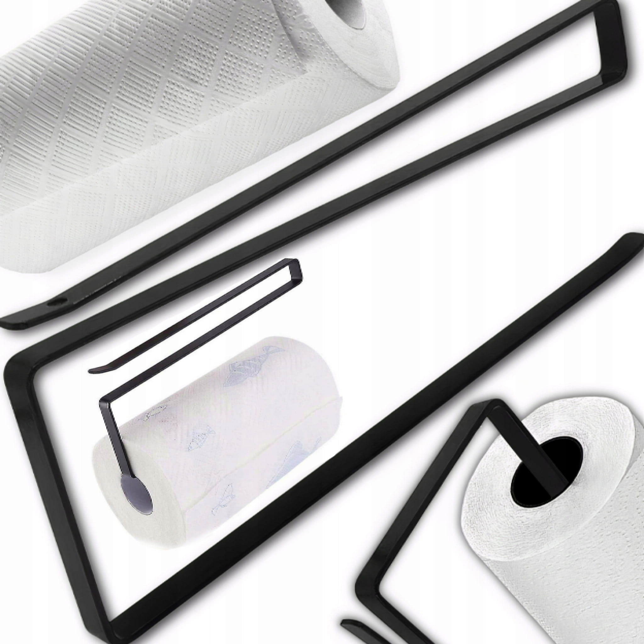 Metalowy Wieszak Kuchenny Na Ręcznik Papierowy Mocowany Do Szafki - Czarny