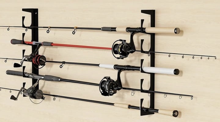 Metalowy Wieszak Organizer Uchwyt Na 5 Wędek Montowany Na Ścianie Suficie