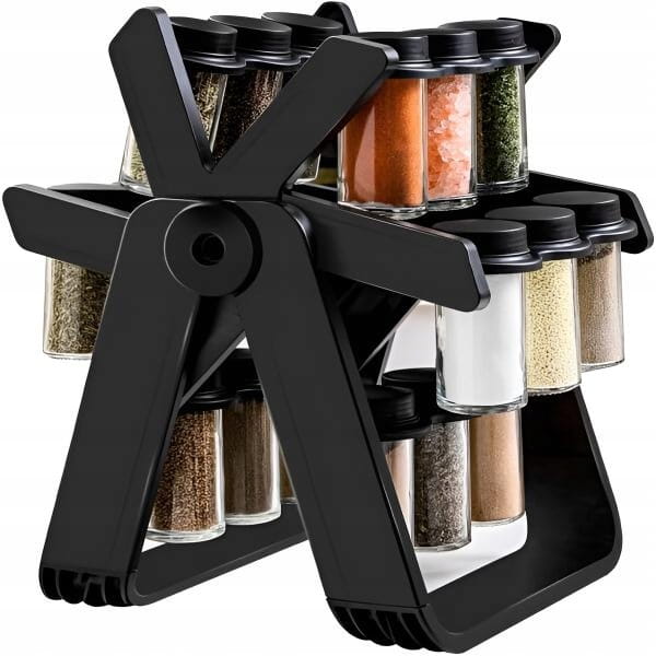 Obrotowy Organizer Stojak Na Przyprawy - 18 Szklanymi Słoiczków Czarny