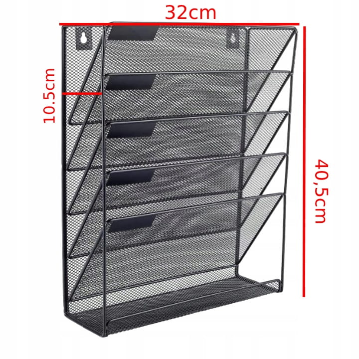 Praktyczny organizer ścienny na dokumenty to idealne rozwiązanie do biura, domu lub gabinetu. Wykonany z trwałej metalowej siatki, posiada 5 pojemnych przegród umożliwiających segregację korespondencji, dokumentów A4, czasopism czy notatek, oraz 1 półkę na mniejsze akcesoria. Możliwość montażu na ścianie pozwala zaoszczędzić miejsce na biurku i zachować porządek w przestrzeni roboczej. Czarna, elegancka konstrukcja pasuje do każdego wnętrza, a solidne wykonanie gwarantuje długotrwałe użytkowanie. Idealny do organizacji pracy, sortowania dokumentów i utrzymania ładu w każdej przestrzeni – zarówno domowej, jak i profesjonalnej.