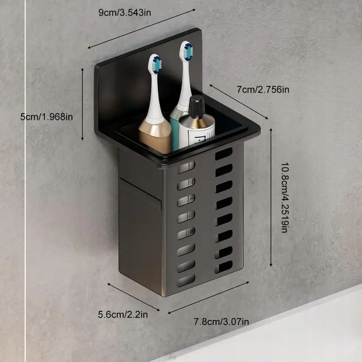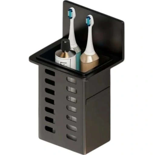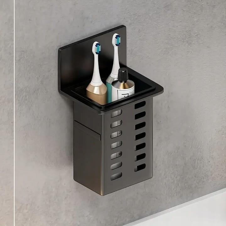 Praktyczny i stylowy organizer łazienkowy to idealne rozwiązanie do przechowywania szczoteczek elektrycznych, pasty do zębów, kosmetyków lub innych drobnych akcesoriów. Wykonany z trwałego tworzywa, odporny na wilgoć i łatwy do utrzymania w czystości. Posiada samoprzylepny uchwyt, dzięki któremu z łatwością zamontujesz go na ścianie – bez wiercenia! Pionowa konstrukcja z otworami wentylacyjnymi zapewnia odpowiednią cyrkulację powietrza i higieniczne przechowywanie. Minimalistyczny, nowoczesny design w kolorze czarnym doskonale pasuje do każdej łazienki. Idealny do małych przestrzeni.
