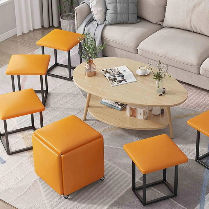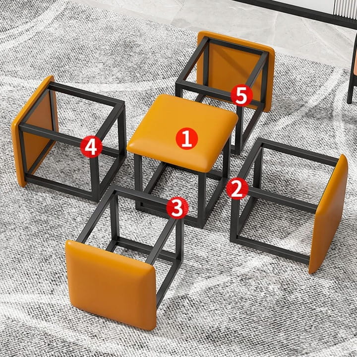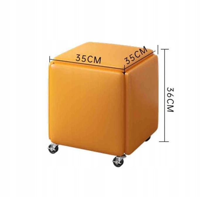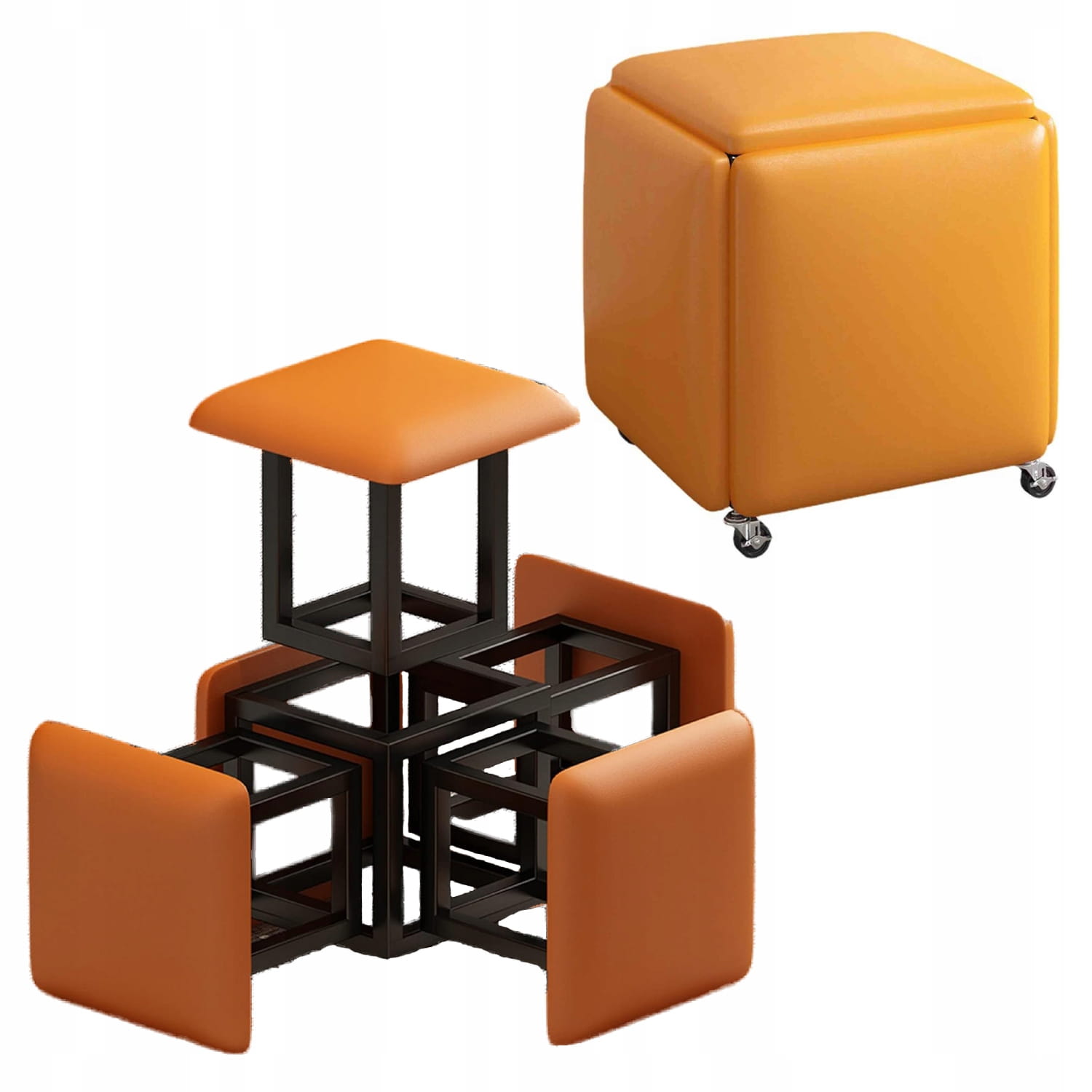 Funkcjonalna i nowoczesna pufa 5w1 to doskonałe rozwiązanie do każdego wnętrza – salonu, przedpokoju, biura czy pokoju młodzieżowego. Po rozłożeniu zyskujesz aż 5 osobnych siedzisk, które można błyskawicznie złożyć w jedną kompaktową kostkę. Całość osadzona jest na kółkach, co ułatwia przesuwanie mebla bez wysiłku. Wykonany z wytrzymałej konstrukcji stalowej i miękkiej tapicerki w kolorze pomarańczowym – łączy wygodę z designerskim wyglądem. Idealny, gdy brakuje miejsca, a chcesz mieć zapasowe siedziska pod ręką. Świetnie sprawdzi się również jako element dekoracyjny.