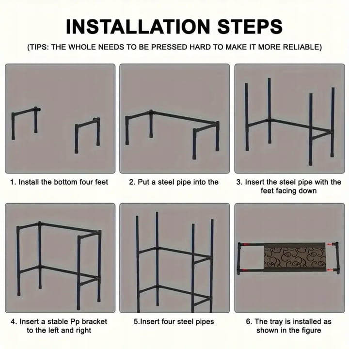 ⚙️ Materiał: Metalowy stelaż + półki z tworzywa sztucznego