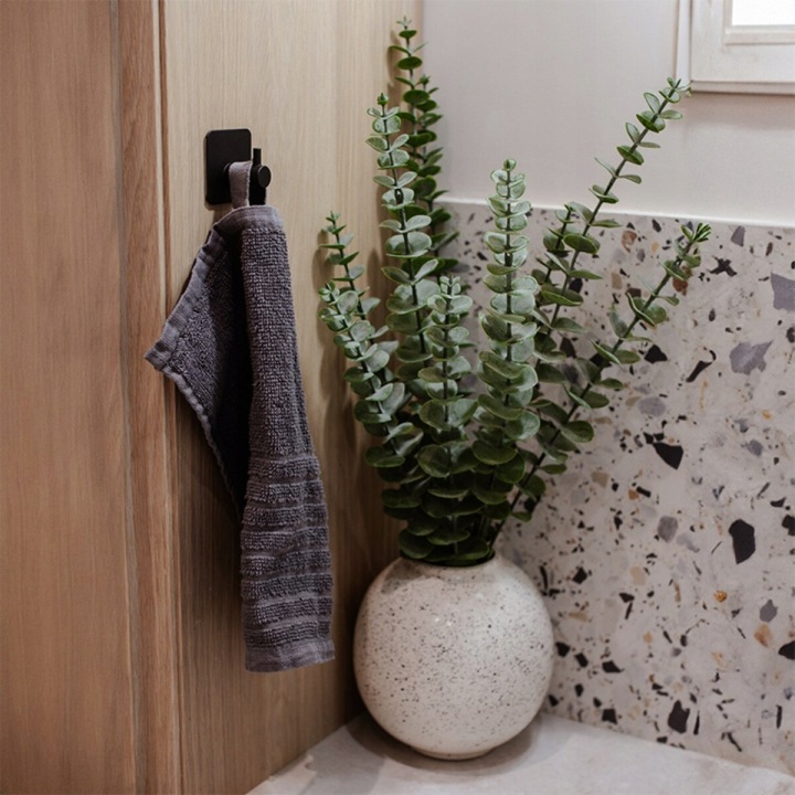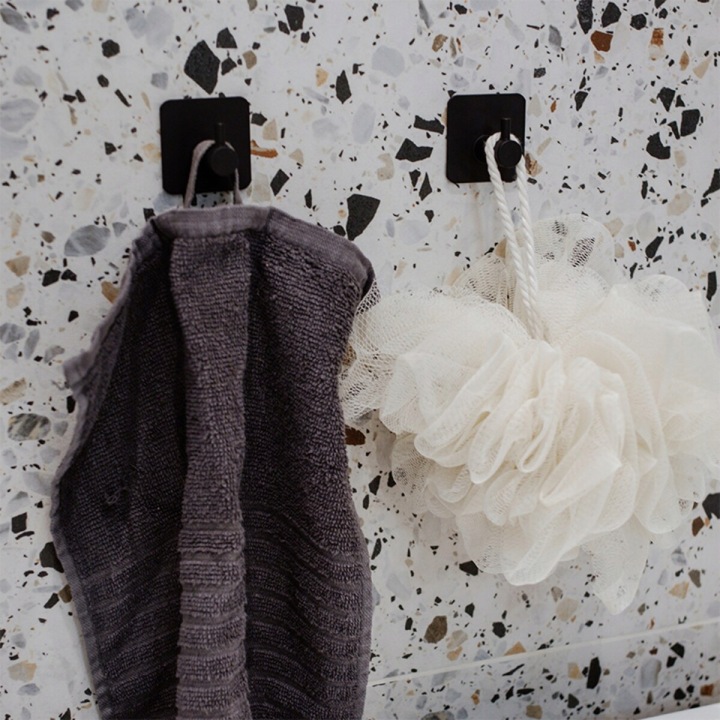 Praktyczny zestaw samoprzylepnych haczyków to idealne rozwiązanie do każdej łazienki, kuchni czy pomieszczenia gospodarczego. Dzięki nowoczesnemu, minimalistycznemu designowi w kolorze czarnym doskonale wpasują się zarówno w nowoczesne, jak i klasyczne wnętrza. Haczyki umożliwiają szybki i bezinwazyjny montaż – bez wiercenia, bez narzędzi i bez uszkadzania ścian.