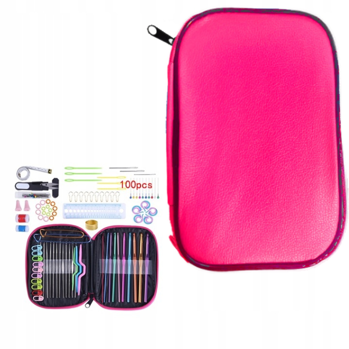 Zestaw do Szydełkowania Dla Początkujących 100 Elementów + Różowy Pokrowiec