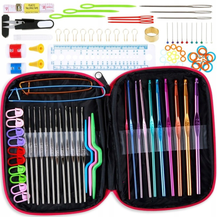 Dzięki poręcznemu etui , zestaw można łatwo zabrać ze sobą w podróż, na spotkania z innymi miłośnikami szydełkowania czy po prostu mieć pod ręką w domu.