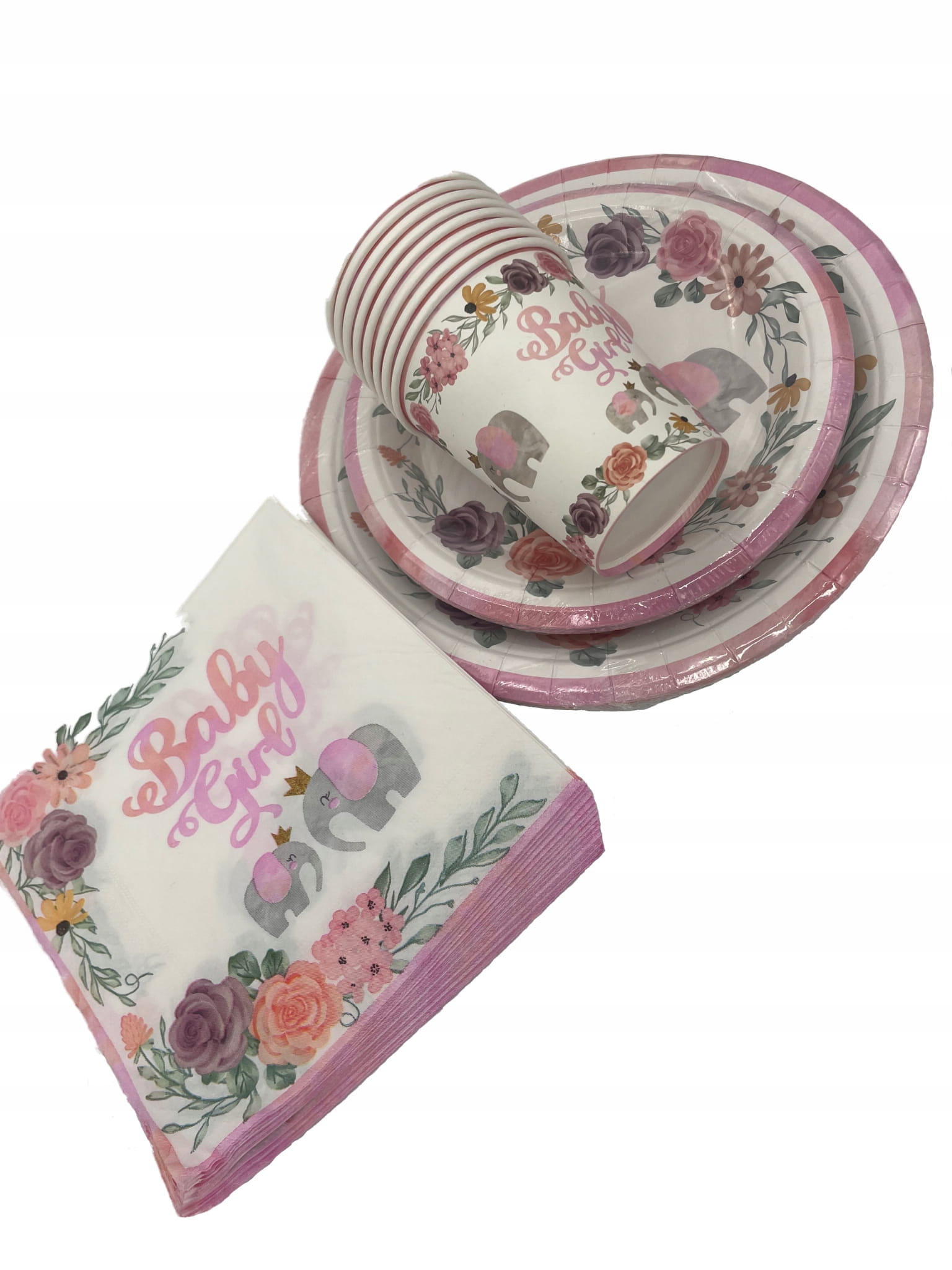 Zestawy Urodzinowe - Baby Shower Talerzyki Kubki Serwetki Dla Dziewczynki